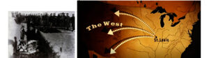 É probable que o Oeste Americano comece en San Luís (A porta do Oeste). Intrépidos exploradores, militares, acaparadores de Terras e outros moitos en busca dunha vida mellor e por suposto a febre do ouro, procedentes de todo o mundo sobre todo dos propios Estados Unidos e de Europa. Calcúlase que entre 1840 e 1860 unhas 400.000 persoas percorreron o 3.219 Km da senda de Oregón, enfrontándose á enfermidade, a morte, o esgotamento e outras dificultades.